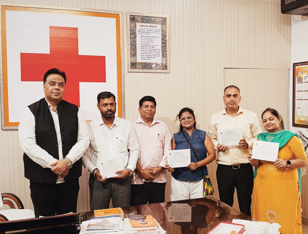 सेंट जोन एम्बुलेंस में गुरुग्राम से पांच सदस्य बनें फस्र्ट एड लेक्चरर, रेड क्रॉस सोसायटी सचिव, जिला प्रशिक्षण अधिकारी ने दी शुभकामनाएं